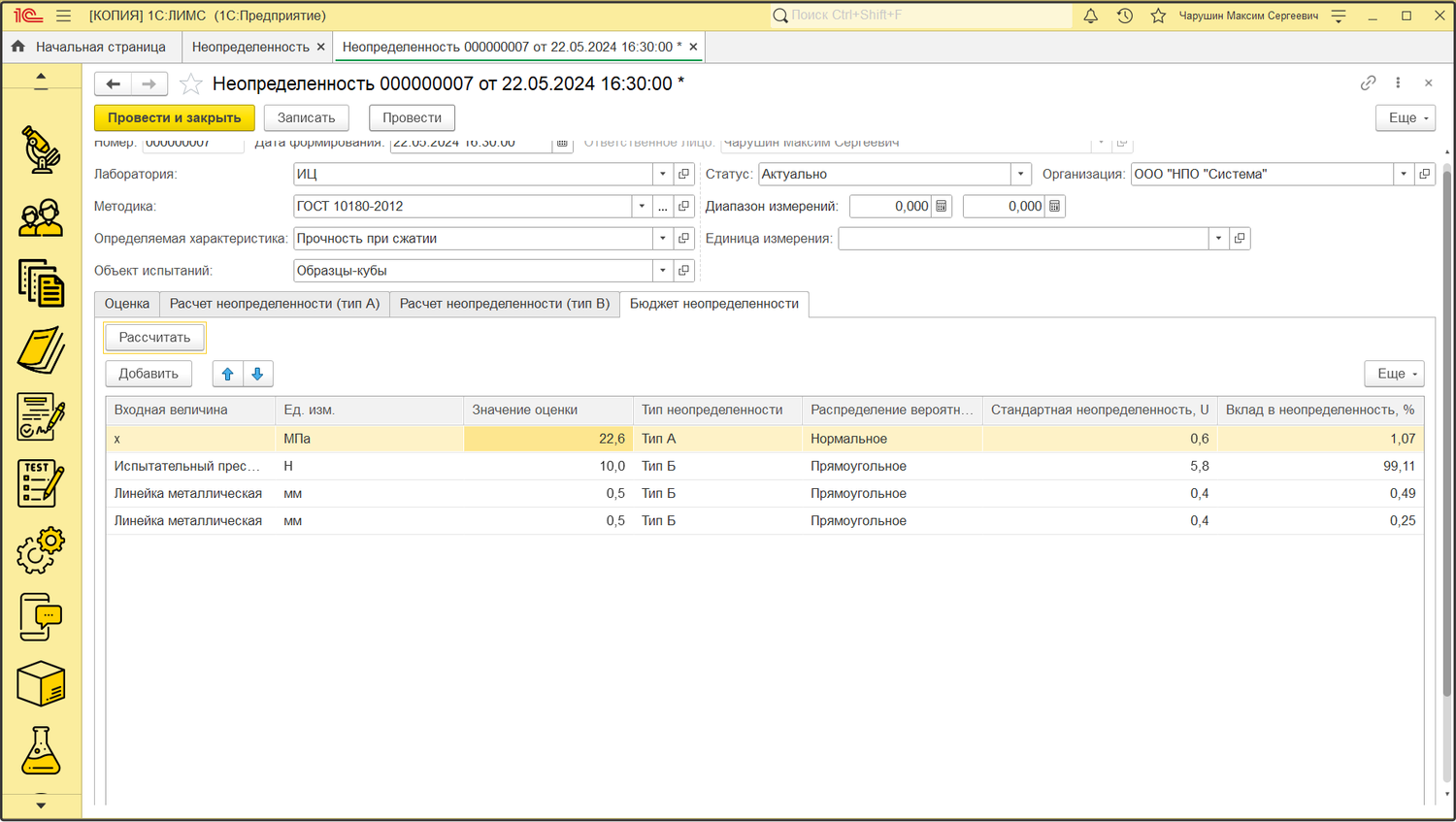 В программе LIMS IT-lab вам не придется рассчитывать её самому, достаточно лишь внести показатели и программа посчитает всё автоматически