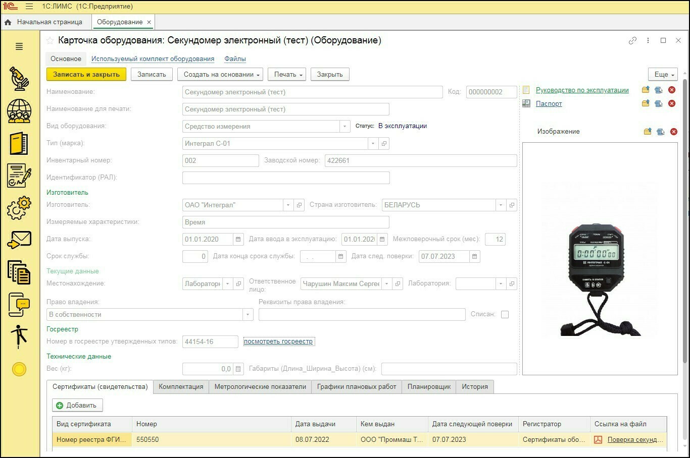 - Отслеживание сроков по метрологии и срокам службы, формирование графиков поверки (калибровки) и аттестации оборудования